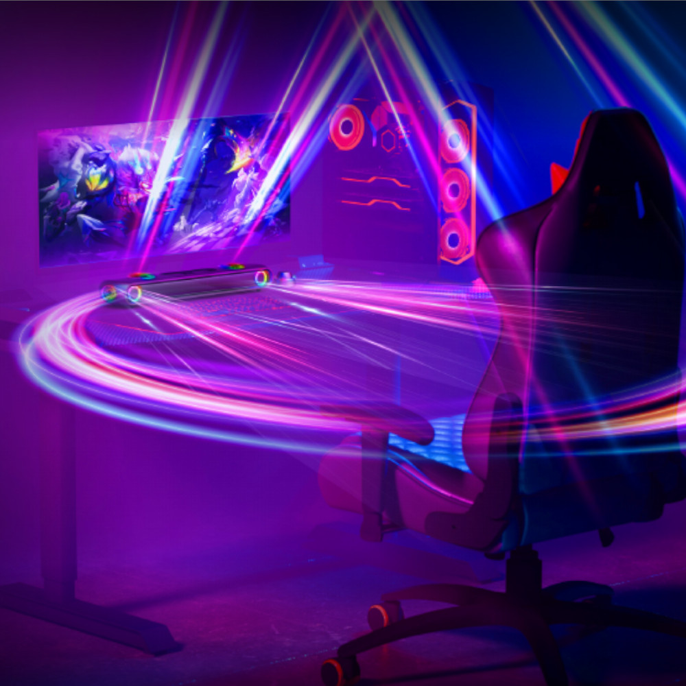 Podświetlenie RGB w soundbarze OXS idealnie dostosowuje się do akcji, jaka toczy się właśnie na ekranie. Dzięki temu możliwe jest jeszcze głębsze zanurzenie się w grze czy filmie. Funkcja ta pozwala także spersonalizować swoje domowe kino lub środowisko gamingowe, zapewniając pełną immersję.