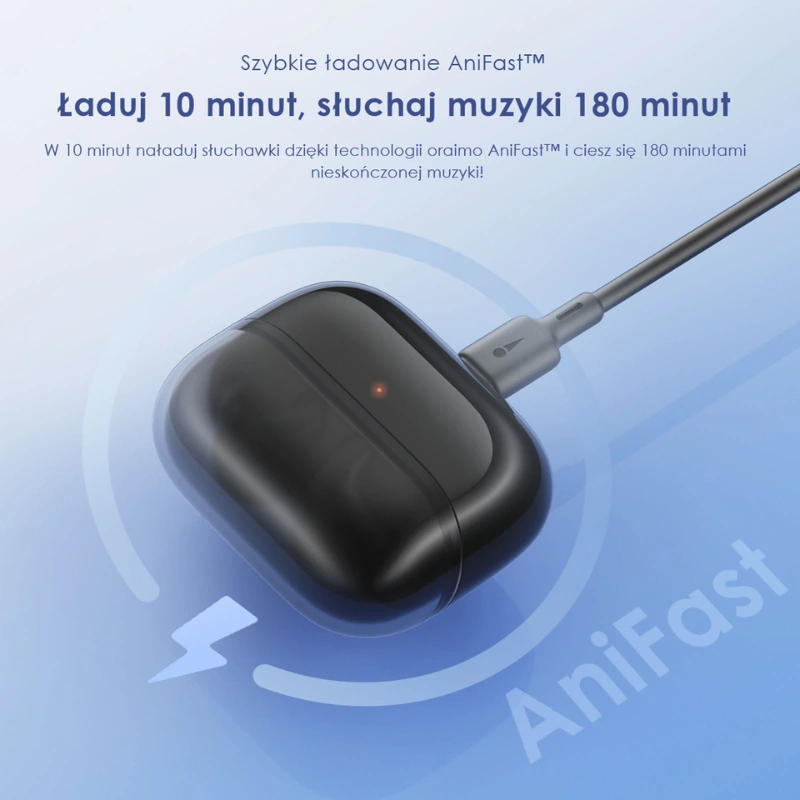 Błyskawiczne ładowanie dzięki AniFast™ – wystarczy 10 minut, aby cieszyć się aż 3 godzinami słuchania muzyki.