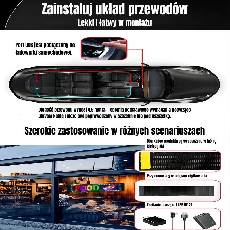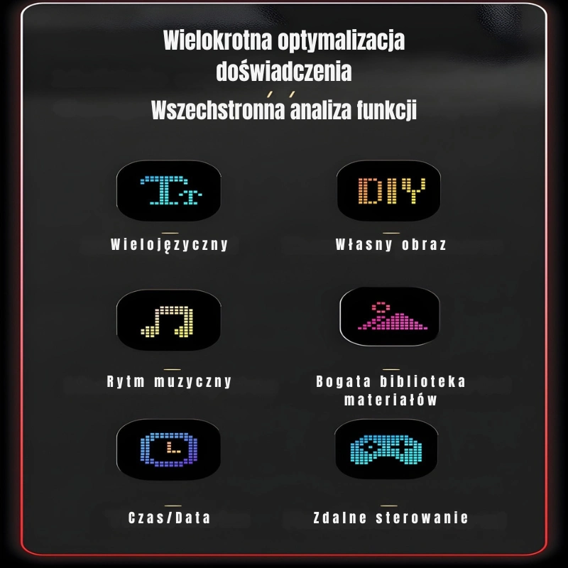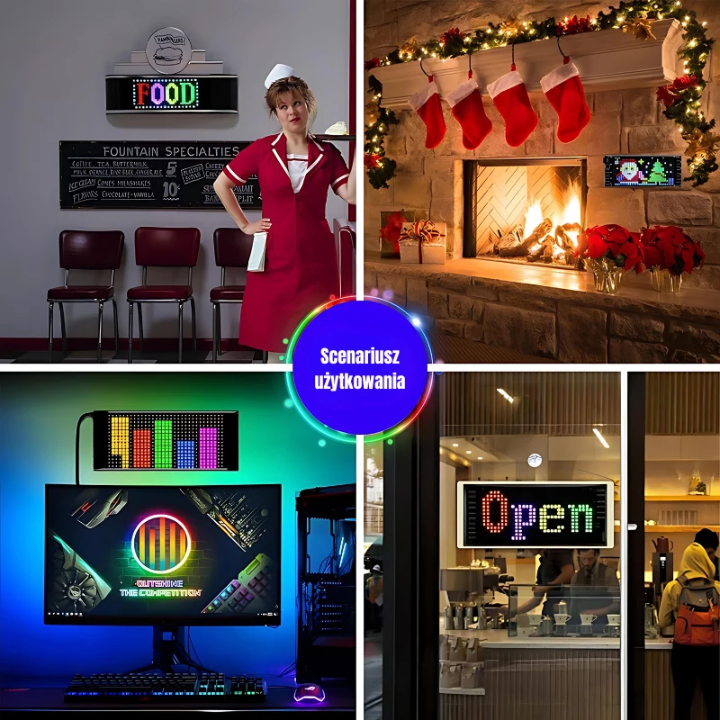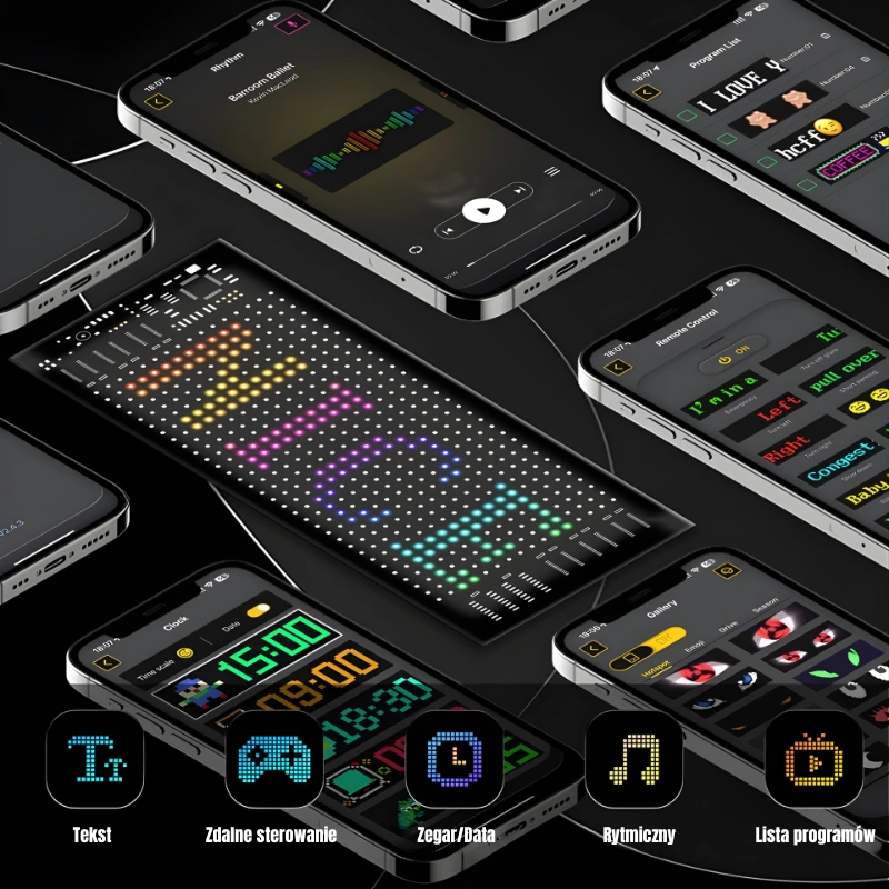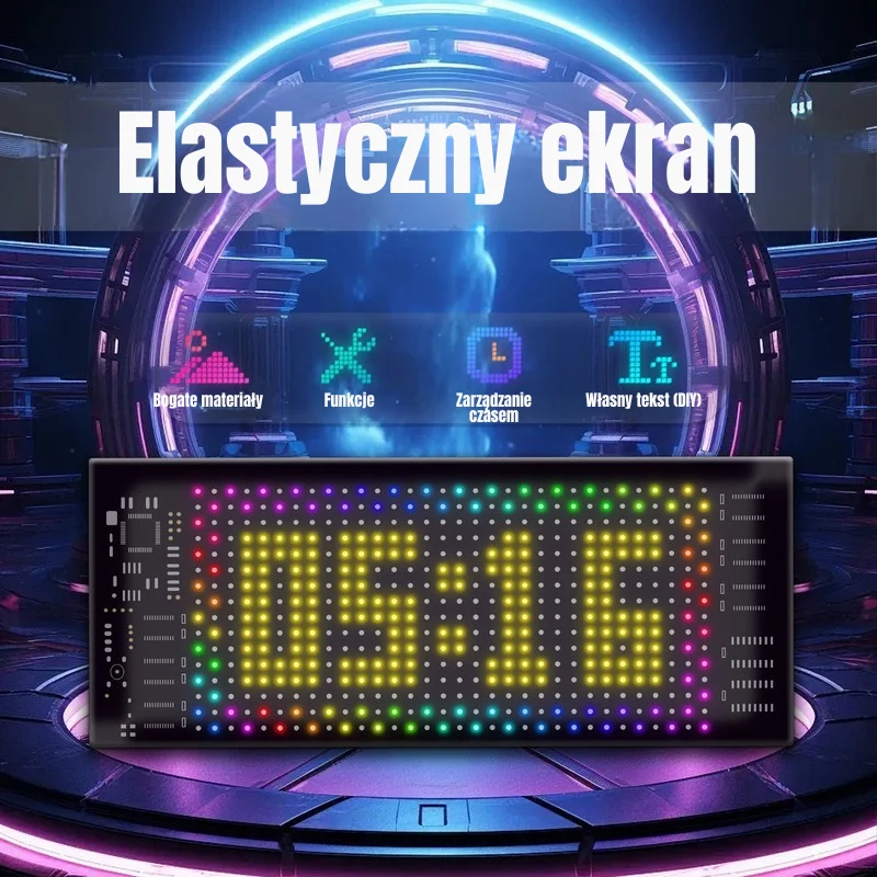 ✓ Nieskończone możliwości – wyświetlaj animacje, tekst, zegar, powiadomienia i własną grafikę