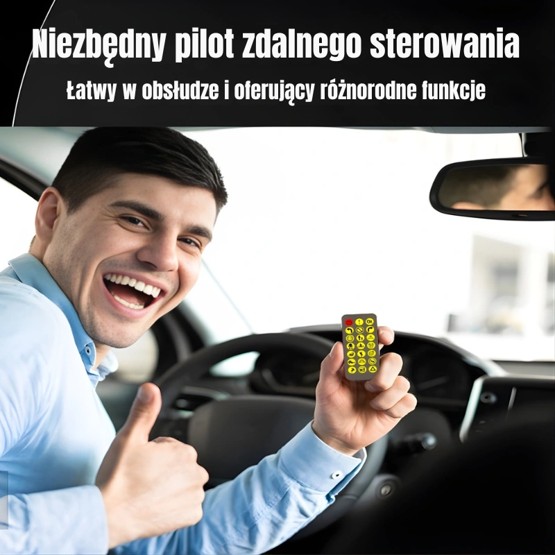 - Pilot zdalnego sterowania – wygodne zarządzanie funkcjami bez telefonu