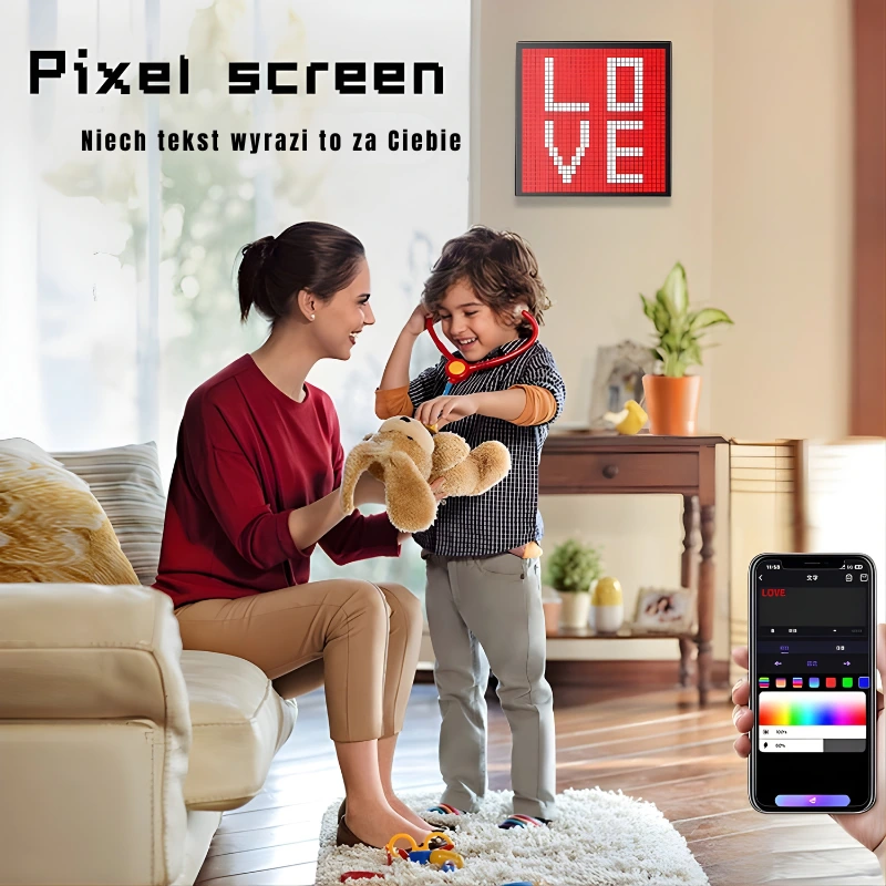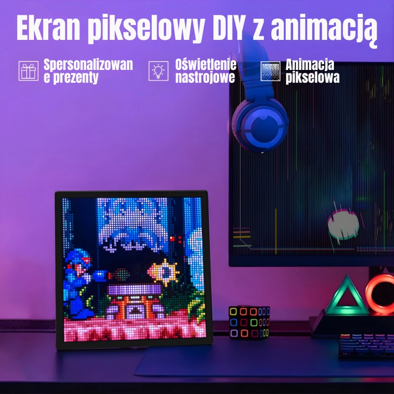 Odkryj możliwości inteligentnego wyświetlacza LED 32x32/64x64 z 1024 diodami RGB! To zaawansowane urządzenie łączące pixel art z nowoczesną technologią, które pozwala tworzyć animacje, wyświetlać zegar, edytować teksty i wykorzystywać gotowe efekty wizualne. Steruj wszystkim za pomocą aplikacji mobilnej przez Bluetooth i nadaj swojej przestrzeni wyjątkowy, technologiczny charakter.